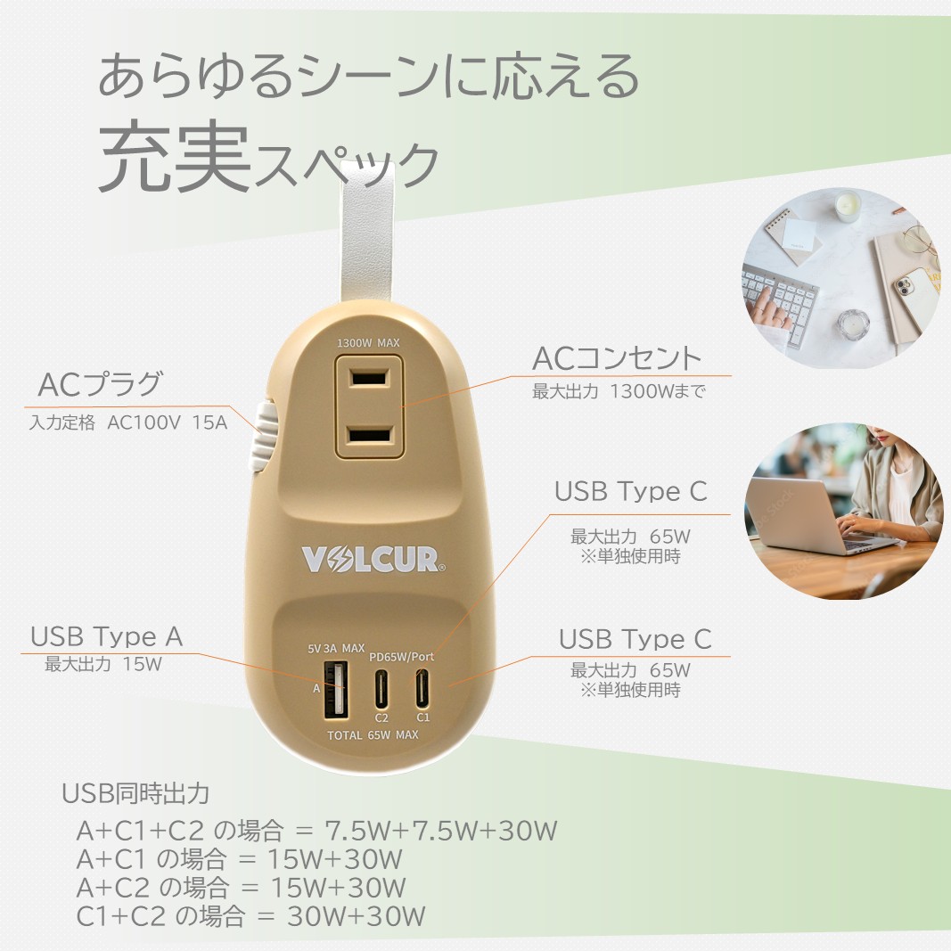USB Type-C×2ポート & USB-A×1ポート & AC×1 ポート MacBook PD対応Windows PC iPad iPhone Android スマートフォン ノートPC 各種 に対応